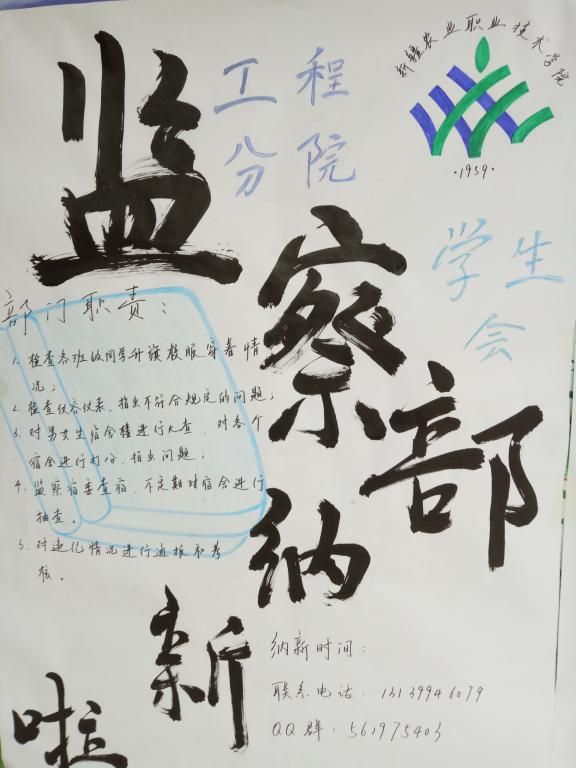 5、对全院学生进行监督、检查,使之规范自己的日常行为,提高自身综合素质;