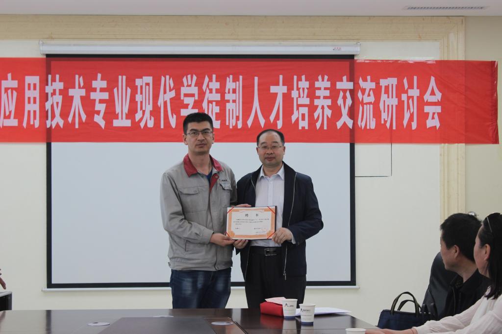 会上将农业装备应用技术专业现代学徒制试点班的人才培养方案、专业现代学徒岗位标准、师傅选拔标准、学徒选拔标准、考核评价方法等各种学徒制的相关文件与企业负责人进行了探讨交流。