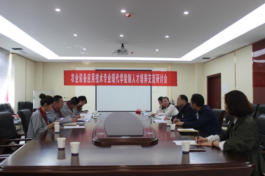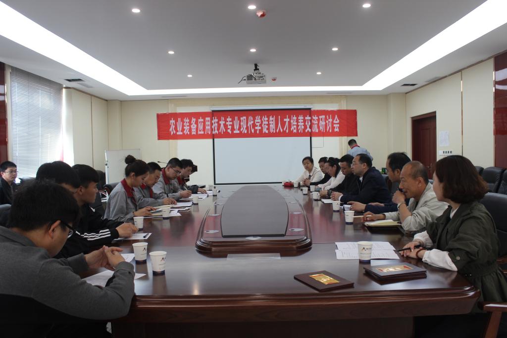学院领导教师与企业专家共同开展了农业装备应用技术专业现代学徒制人才培养方案和学徒制岗位标准的论证。